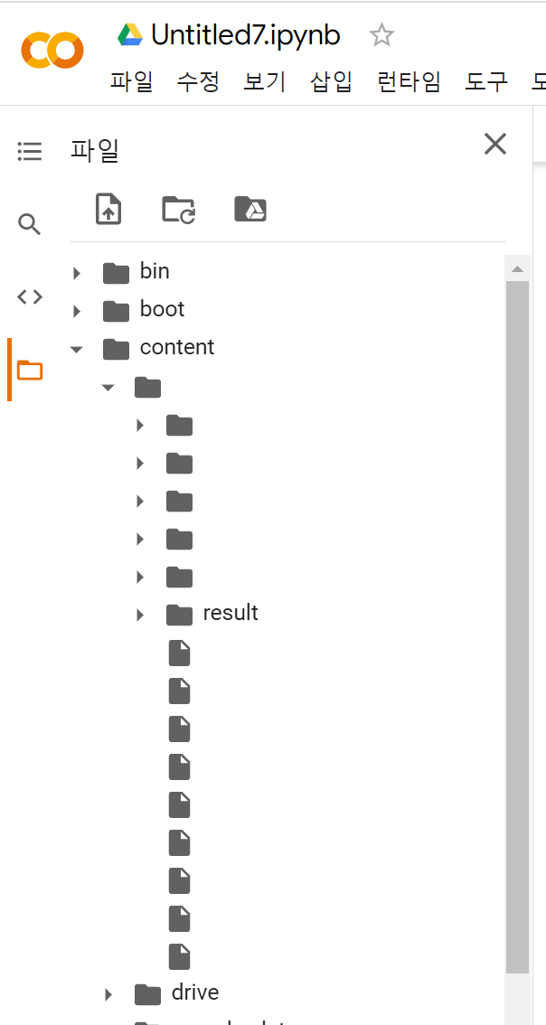 위와 같은 명령어를 colab에 적으면 첫 번째 구간의 경로 안에 zip 파일이 생성될 것입니다.