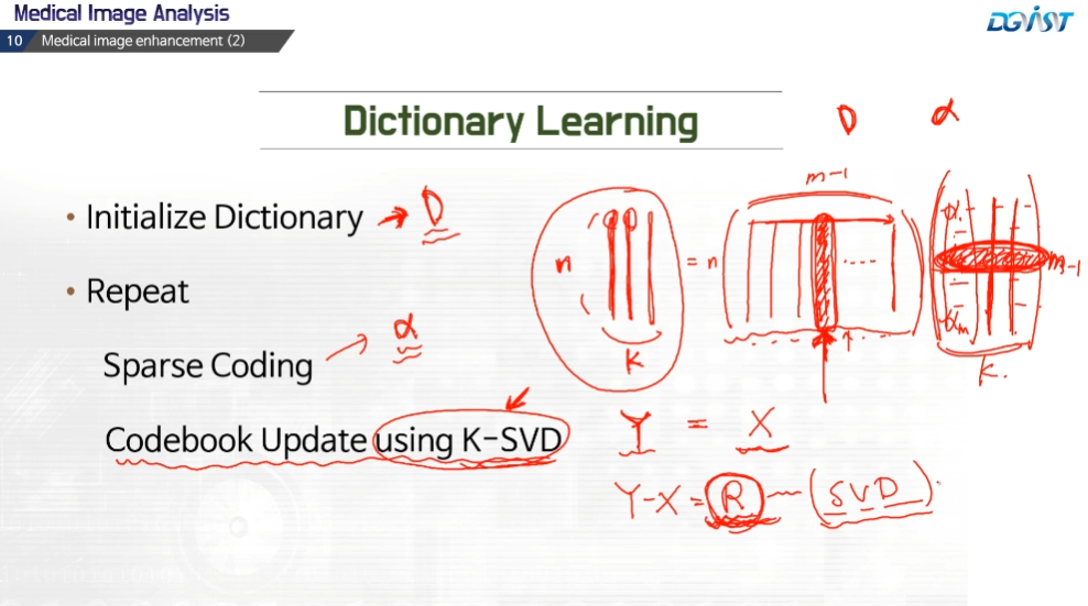 - Codebook Update using K-SVD - $\alpha , D$ update