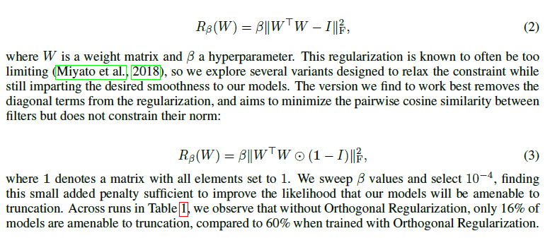 Orthogonal Regularization Eq (3) 를 통해 truncation trick이 가능하게 함.