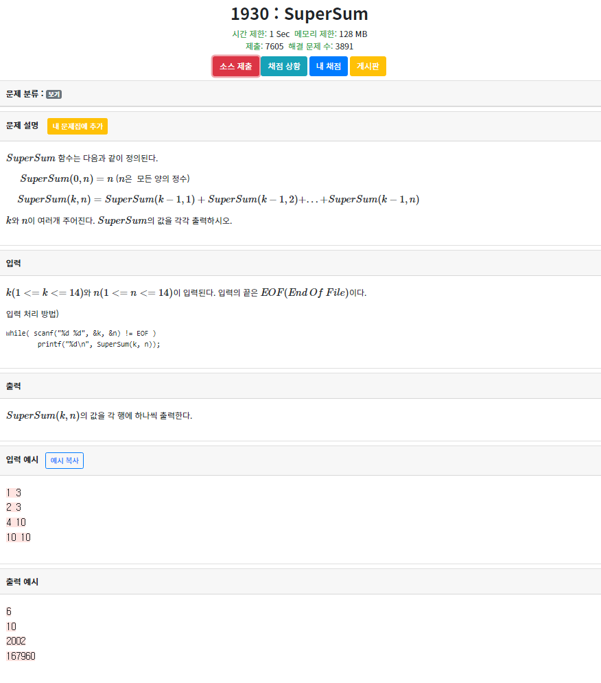 해당 내용은 파스칼의 삼각형(Pascal's triangle)과 유사하다고 판단되었고 이를 통한 방법을 활용한 방법입니다.