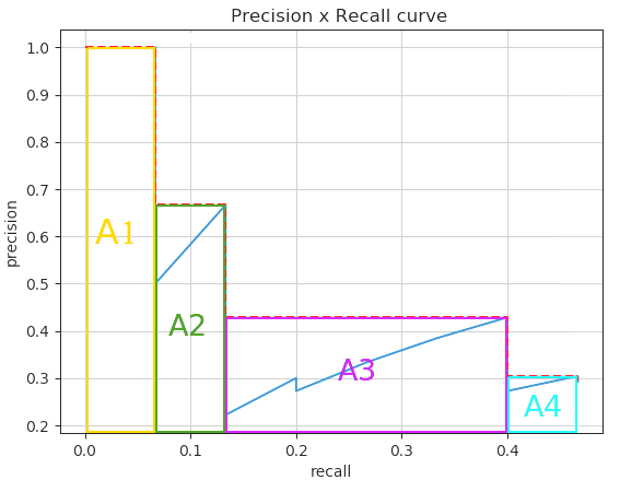 AP는 바로 이 Precision-Recall Curve의 면적을 의미한다. 여기까지 배운 것을 아래 github에서 정리한 내용으로 다시 살펴보자.