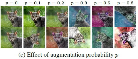 모든 transformation에 대해 동일한 p 값을 사용. p가 작을수록 깨끗한 이미지 생성