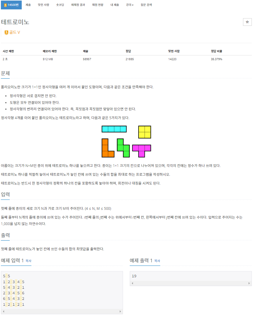 https://www.acmicpc.net/problem/14500