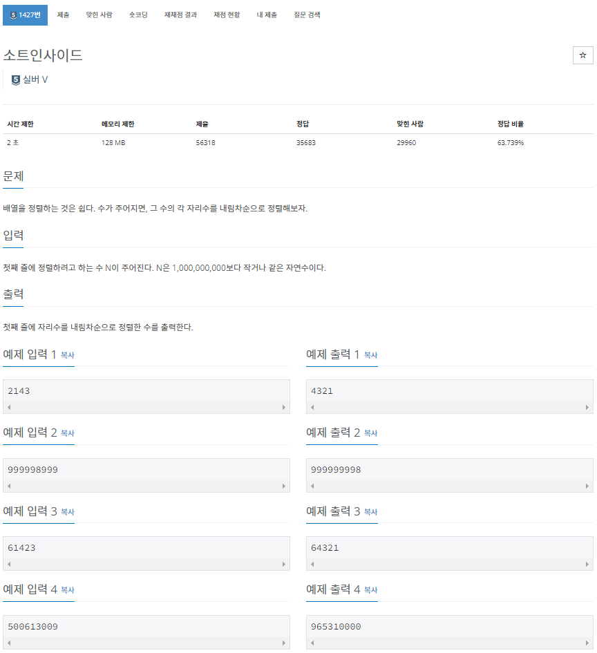https://www.acmicpc.net/problem/1427