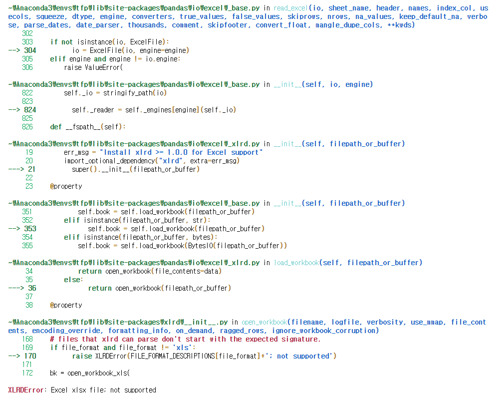 "XLRDError: Excel xlsx file; not supported" Error를 만나게 된다면 다음과 같은 순서를 따르기를 권한다.