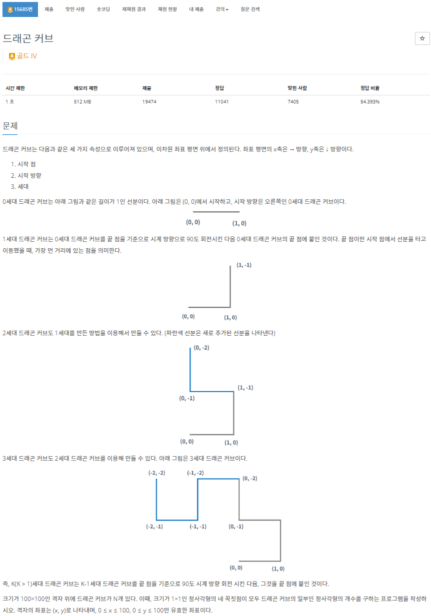 15685번: 드래곤 커브