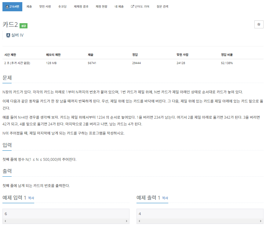 2164번: 카드2