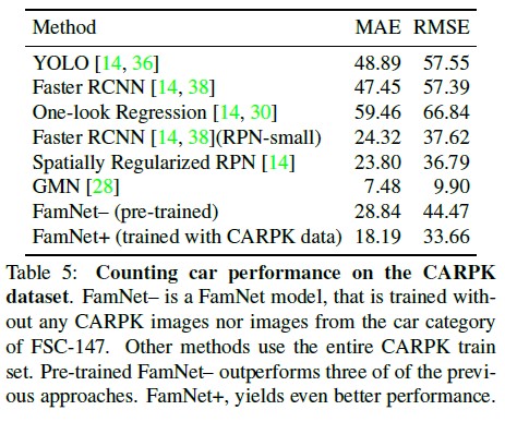 CARPK dataset을 활용해서 훈련시킨 후 성능을 평가했을 때 제안 모델의 성능이 좋음