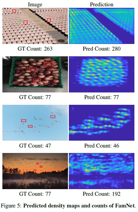 - few-shot detection은 occlusion에 영향을 받지만 few-shot counting은 density estimation을 사용하기 때문에 상대적으로 occlusion에 강건함. 이는 density estimation 방법이 crowd counting이나 cell counting과 같은 다양한 도메인에 적용했을 때 강건했음을 경험적으로 알 수 있음.