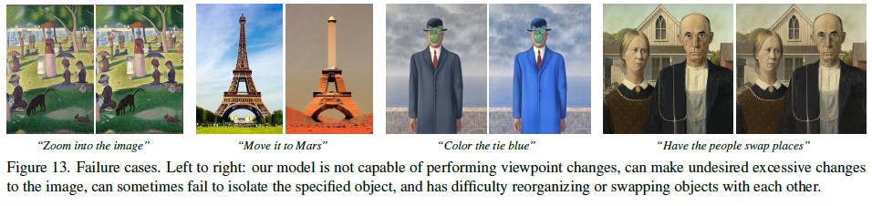 본 모델은 임의의 real image와 natural human-written instruction을 통한 zero-shot genratlization을 달성하기에 다양한 edit이 가능하다.