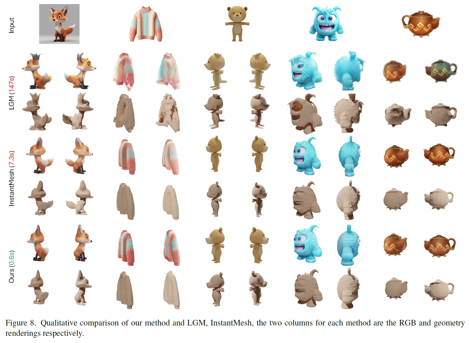 이에 본 논문에서는 효율적으로 고품질 3D assets을 단일 이미지로 생성함과 동시에 빠르고 신뢰도 높은 재구성이 가능하도록 하고자 함.