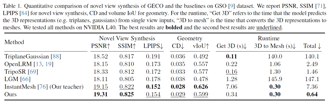 • Extensive experiments demonstrate that GECO achieves high-quality 3D generation within one second, outperforming