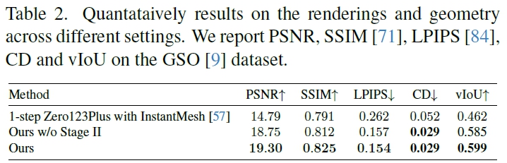 2단계 : fine-tuning a pretrained reconstruction-based method with outputs of the single-step multi-view diffusion model from the first stage.